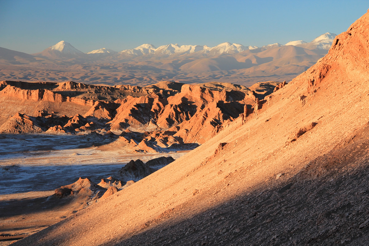 Día 5: Valle de la Luna Salida a las 15:00 desde la agencia. En camino que une San Pedro con Calama, parada para fotografiar la Cordillera de la Sal. A continuación visita al valle de la Muerte (caminata 20 a 30 min., aprox.). Luego en el Valle de la Luna se visitarán las estatuas de Sal "Las Tres Marías", la Mina de Sal, El Mirador, las Cavernas de Sal y se esperará el atardecer en la gran duna de arena en el cráter central. Recorrido: 42 Km. Regreso a San Pedro a las 20:00 horas. Recomendaciones: Llevar pulóver, bloqueador solar, agua mineral, linterna.