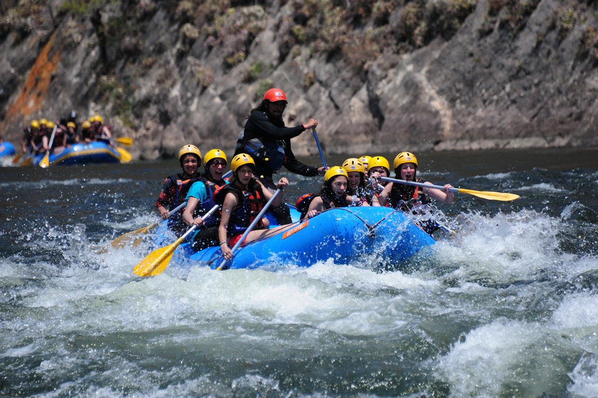 El rafting comienza en la base con un curso instructivo de esta actividad y seguridad.